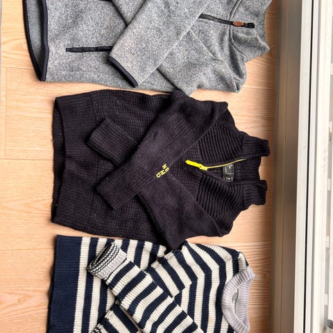 Pent brukte, den blå har litt slitasje på ene kneet. Kr 100 per stk eller 150 for begge
