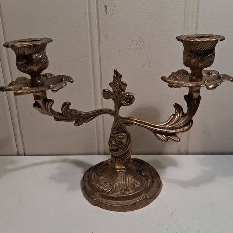 Disse to vegglysestakene kalles " Tørne " og er i solid messing. Nydelig utført med høy grad av detaljer. Begge er pent brukt, ingen skader.