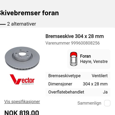 Kjøpt på autodoc til kr 1616. Selges hbo 1500kr + frakt.