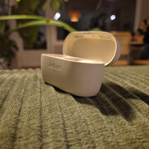 Dette er Jabra Elite 4, et kompakt og komfortabelt sett trådløse ørepropper med god lyd og pålitelig tilkobling. Perfekt til både hverdagsbruk, musikk og samtaler.