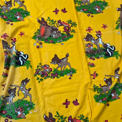 #unisex barn gutt jente baby stoff patchwork retro farger gul rød oransje grønn blå sort skogen rådyr mor mamma barn baby kjuttaviga dyr aper kameler blå grønn brun gul fargerik farger retro 1980 1990 Dyreparken apehuset