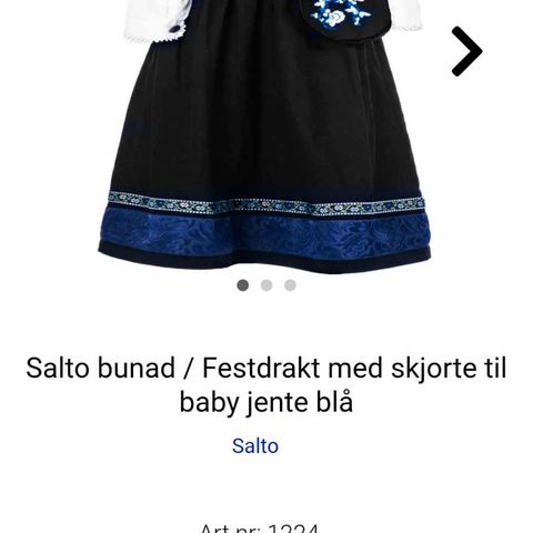 Helt ubrukt Name it festdrakt/bunad størrelse 86. Kjolen har broderte blomsterdetaljer og røde kanter, laget av strikket materiale.