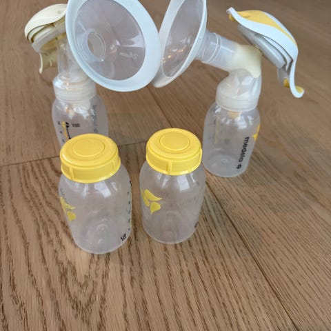 Knapt brukt Medela pumpe med mykje utstyr.