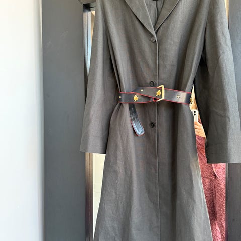 Silke trenchcoat med pelsfôr som kan tas av for varmt vær. Som ny. Flott kvalitet