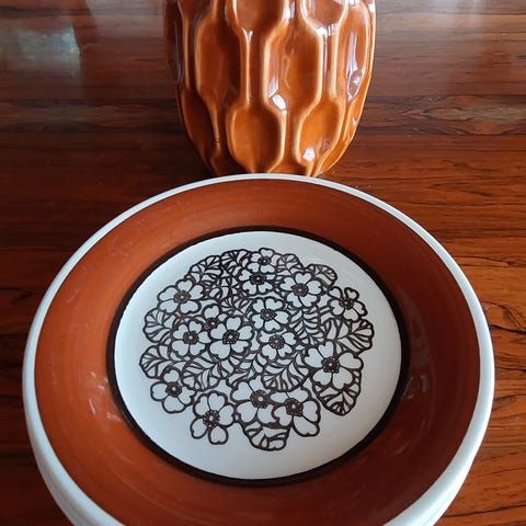 Stort vintage serveringsfat fra svenske Pukeberg med helleristninger - Design Staffan Gellerstedt