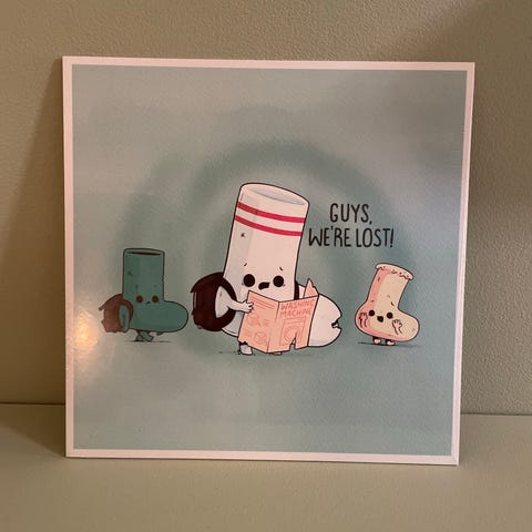 Fargerikt popart-trykk, ca. 33 x 43 cm, originalt og med innslag av jul, merkevare og inkasso-humor. Passer perfekt til den med humor – eller julebudsjett langt i minus.