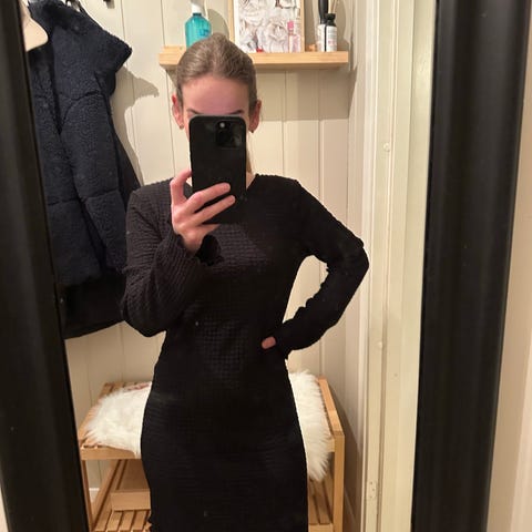 KO:KO Hverdagskjole i brun farge, størrelse 38 for kvinner. Langermet kjole med høy hals og lommer. Passer til hverdagsbruk.