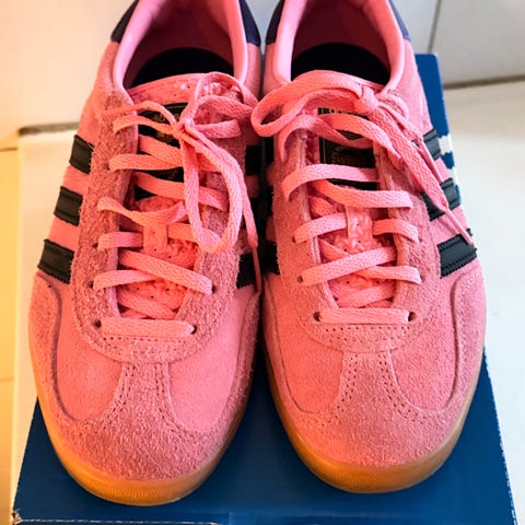 Nydelig fargekombinasjon lyserosa og kongeblå! Helt nye Gazelle fra Adidas, bare brukt de én gang da de ikke helt passet. Kan sendes eller hentes i Ski evt møtes i Oslo sentrum.