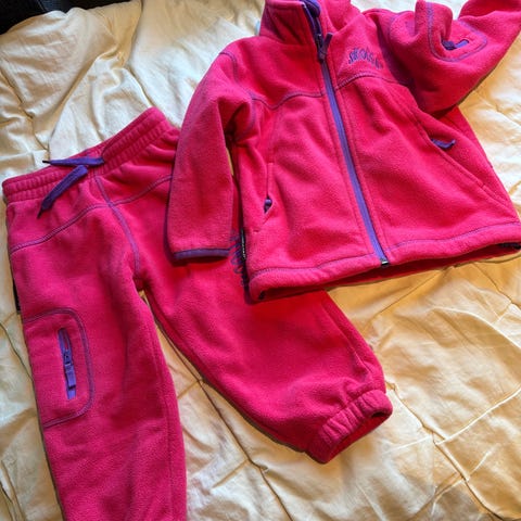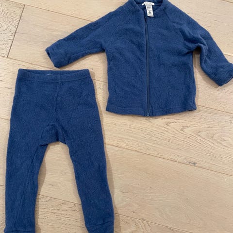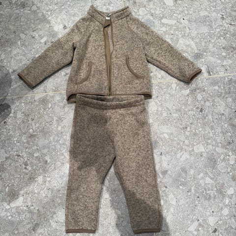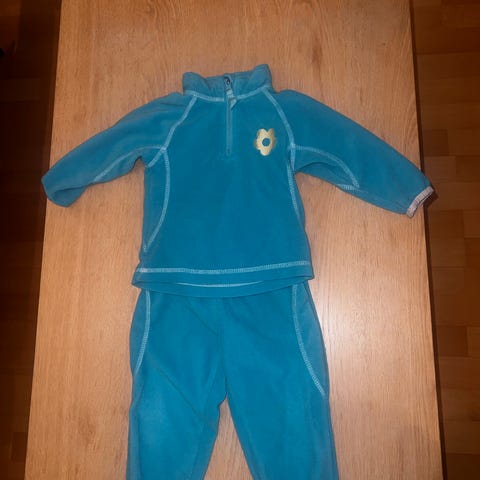 Mørkegrønt fleecesett fra Tiny Trolls, str 80. Fra dyre-og røykfritt hjem