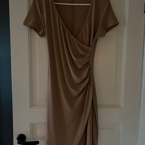Kjolen har lange ermer og et elastisk midjebånd som gir passform. Laget i et mykt og glatt materiale med en lett glans.