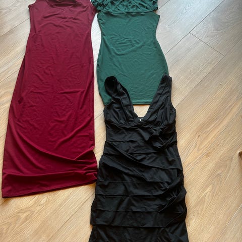 kjoler i grønn, rød, rosa, gull, blomster.. paljetter…
