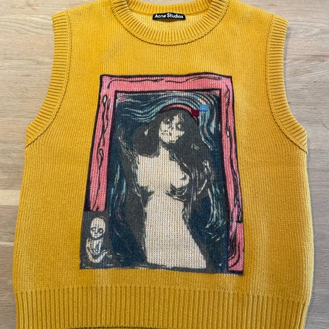 ASOS Yin Yang Mønster Vest i størrelse M. Vesten har et flerfarget design med yin yang-symboler og er laget i et mykt stoff. Passer for Unisex og kan brukes som et lag over t-skjorter eller skjorter.
