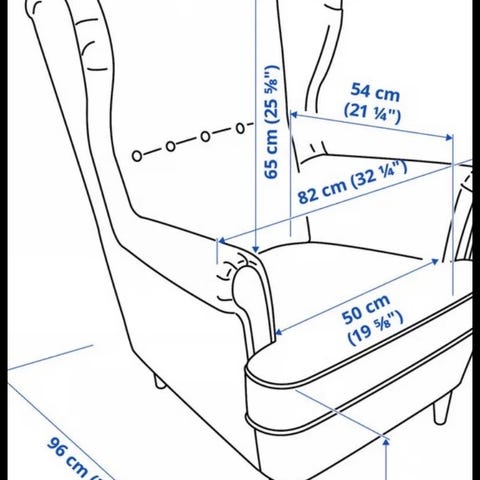 2 stk IKEA Strandmon stoler selges, pris er for begge, foretrekker å selge samlet. De er veldig fine i stoffet og nylig rengjort og renset med tepperenser. Nypris er 3000,- pr stol