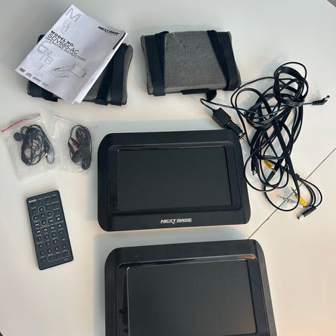 Andersen dobbelt DVD-spiller bærbar svart. Denne modellen er designet for enkel transport og bruk. Den kommer med nødvendige kabler for tilkobling og lading. Egnet for avspilling av DVD-er på farten med 2 skjermer(for å henge på nakke-støttene foran seg).