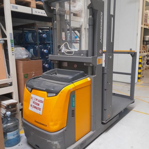 Nissan gaffeltruck med dieselmotor. Utstyrt med standard gafler for løfting og transport av paller. Sete og ratt for førerkomfort. Egnet for industriell bruk og lagerhåndtering. Skyvemast med spreder. 2,5 tonn løfteevne. Trenger nytt batteri.