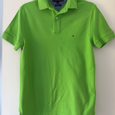 Polo Ralph Lauren i størrelse S slimfit for menn, (M ungdomsstørrelse), grønn farge. Laget av bomull med klassisk polokrage og knappelukking. Pent brukt.