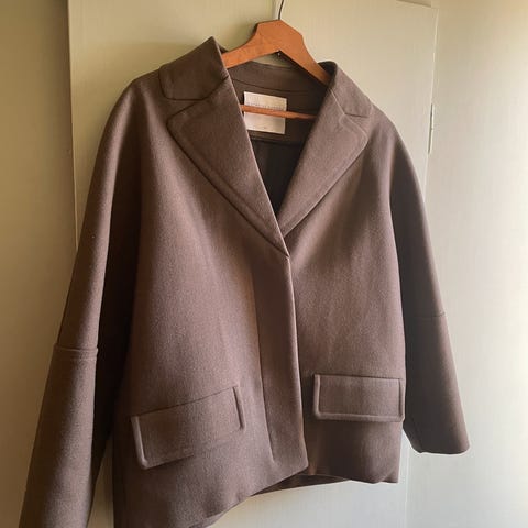 Cathrine Hammel Andre jakker i størrelse XS, beige farge. Jakken er laget av et mykt materiale og har en enkel, lang design som passer til kvinner.
