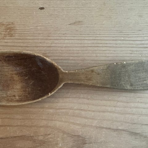 Gammel tresleiv / øse – 39 cm . Stor håndskåret tresleiv i heltre med fin, naturlig patina. Brukt på gård i Telemark.
