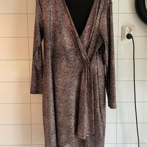 str. 44/46 selges for kr. 500,-. Ankellang. Kun prøvd på. Aldri brukt. Måler ca. 60 cm. fra armhule til armhule. Nydelig hullmønster øverst på brystet. Perfekt til julebordsesongen🤩