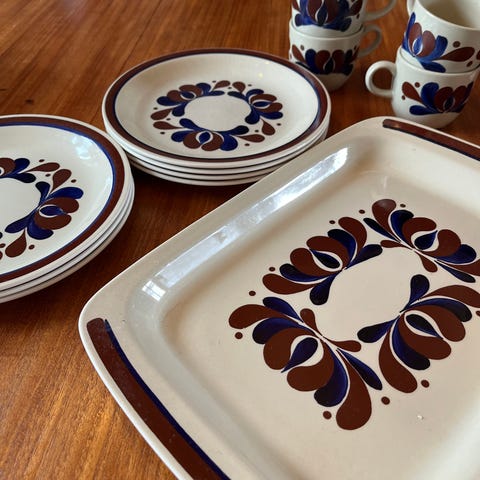 Brun glasur med geometrisk blomsterdekor i relieff – klassisk 70-talls stil 🌼