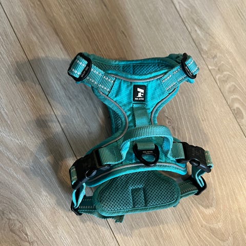 Myk sele med behagelig fòring. Passer til valper og hunder av mindre størrelse med brystmål 35 cm. Var dessverre for liten for vår valp og kun brukt 2-3 ganger. Fremstår som ny.