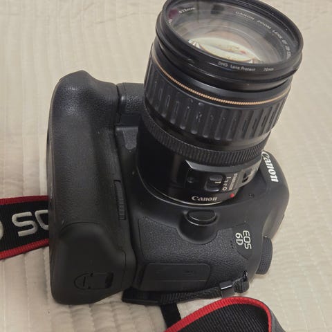 Pent og forsiktig brukt Canon EOS 6D kamera selges. Brukt i hjemmestudio som reservekamera. Shuttercount 120 000. Finner dessverre ikke igjen orginalesken til det. Kjøpt 2013. Aldri vært utsatt for støt eller skader. 3500,-