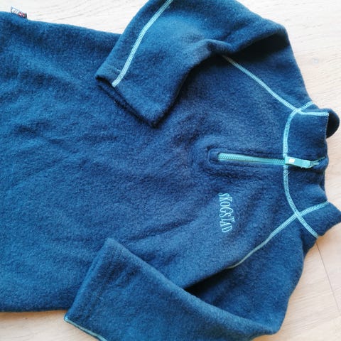 Genseren er brukt to ganger. Flis på innsiden av armene og halsen, sånn at den ikke klør mot huden. Veldig varm. Kjøpt på Dyrkuen i Seljord for et par år siden. Genseren kan brukes fra ca 6-8 år.