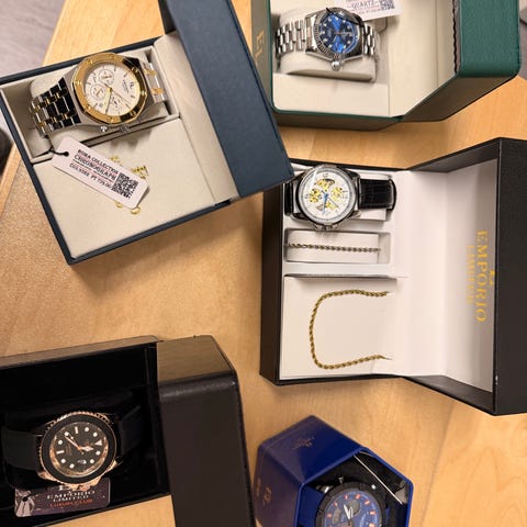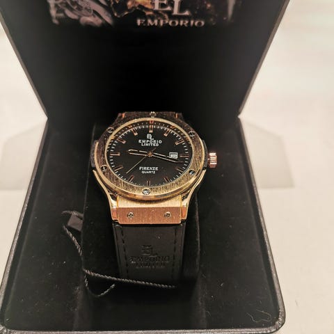 Herre klokke fra Emporio Limited til salgs. Sort skinn reim.