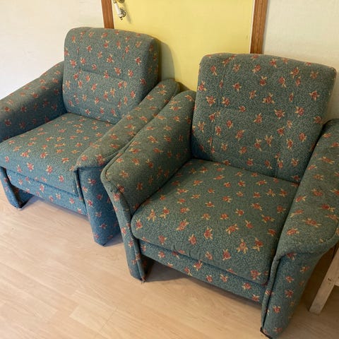 Sofaen trenger nye bakføtter. Kan være behjelpelig med å få lagd nye.