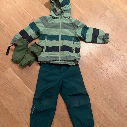 Tilnærmet ubrukt regntøy, regn bukse og jakke, ingen skader eller hull, vanntett. Fungerende seler.