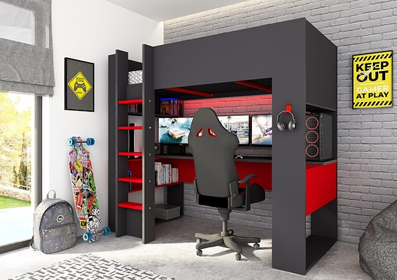 Stigen som er formet som et surfebrett er en av detaljene barna vil sette pris på. I tillegg følger det med ratt til sengens første etasje som vil gjøre at kanskje minstemann setter seg i sengen og kjører rett inn i drømmeland med en ny drømmeseng fra drømmerom :)