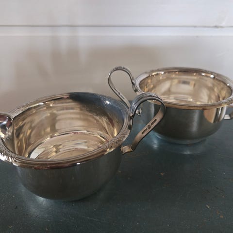 Theodor Berg sølvplett – fløte- og sukkersett med brett