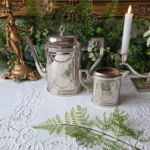 Sølvplett sett – sukkerskål, fløtemugge og fat