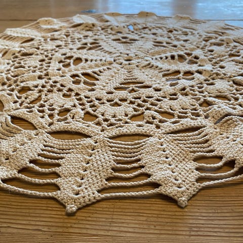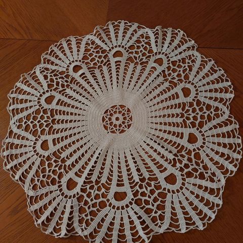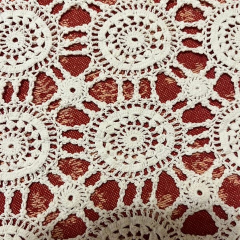 Vakker retro heklet rund duk med fyldige roser, hånd arbeid, 100% bomull