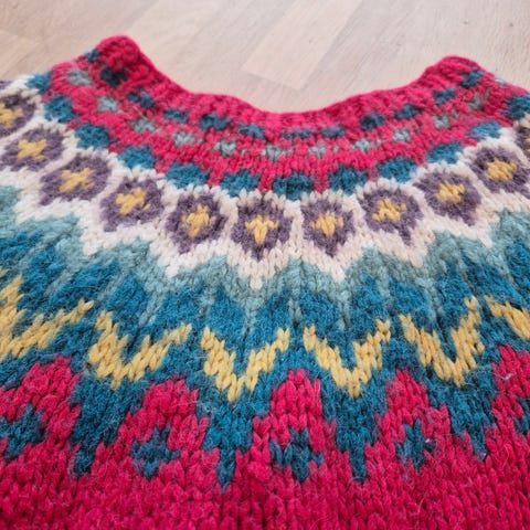 Hjemmestrikket angora genser.