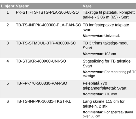Nytt, ubrukt topptrinn til feieplatå fra TB taksikring, muttrer og monteringsanvisnkng følger med