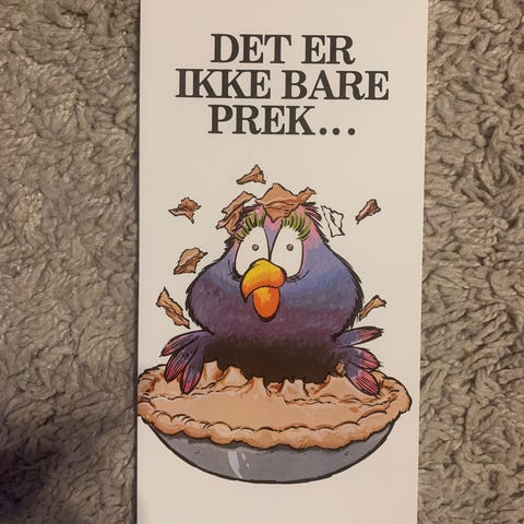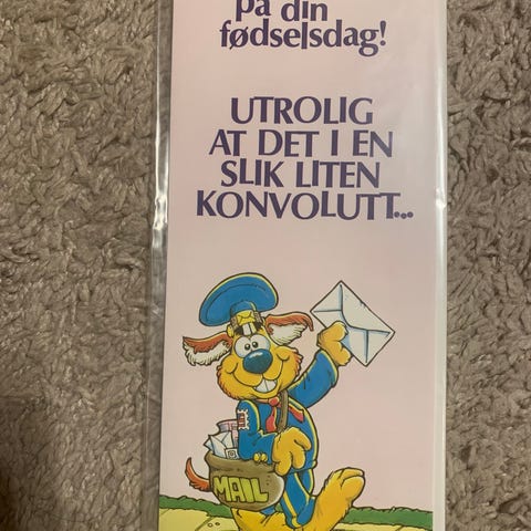 Tekst på innside: Ta det ikke så tungt-det skjer bare en gang hvert år….