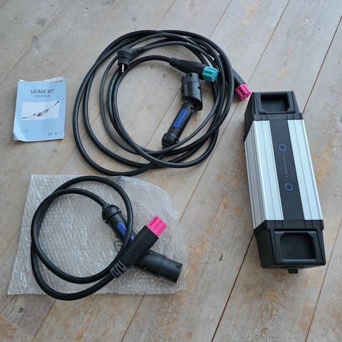 OBS. Mangler kabelen fra lader til bil.