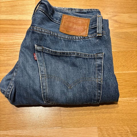 Brun levis 501 med oppgitt størrelse W36 L32, MEN den er usedvanlig trang i midjen og passer bedre på en som bruker W32. Nesten som ny, nest ikke brukt.