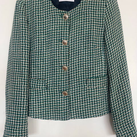 #90-talls y2k 2000 00s 2000-talls vevd fest tweed cardigan jakke blazer høst julebord jul julejakke dressjakke høstjakke office wear grønn vinterjakke