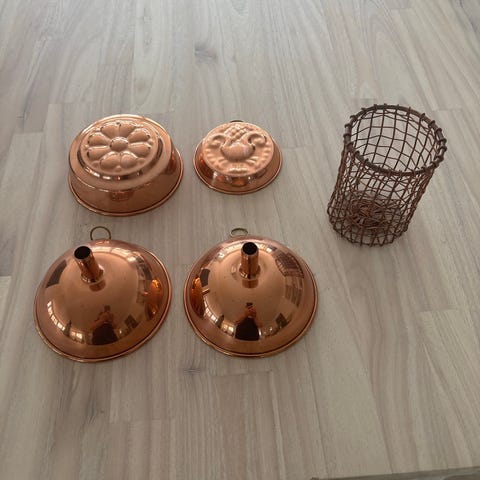 Gammel kobber og messing fløtemugge i Jugendstil