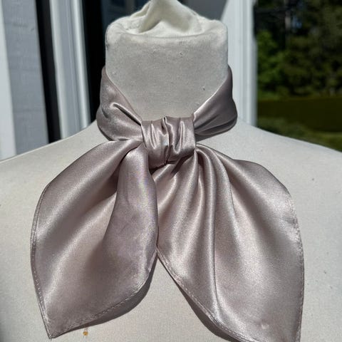 100% silke. Lys creme/eggehvit farge. Veldig myk og fin silke. Er nytt. Størrelse 53 x 53 cm. Kan sende,med posten til 31.-