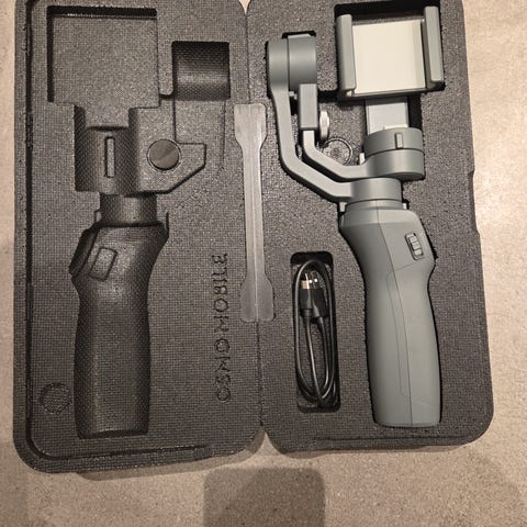 Selger en DJI Osmo Mobile 2 (Modell: OM170), en 3-akset gimbal (stabilisator) for smarttelefoner. Denne er designet for å gi silkemyke og profesjonelle videoopptak ved å eliminere risting og bevegelsesstøy.