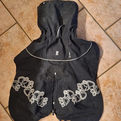 Kjøpte denne brukt på Finn, men passformen passer ikke vår valp. Ser ikke brukt ut og medfølger en strikket genser til å ha under.