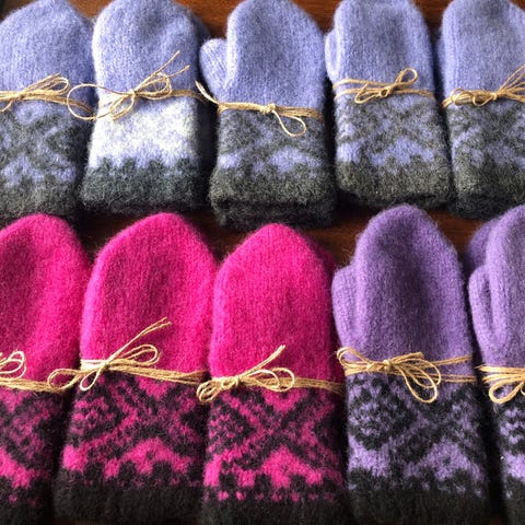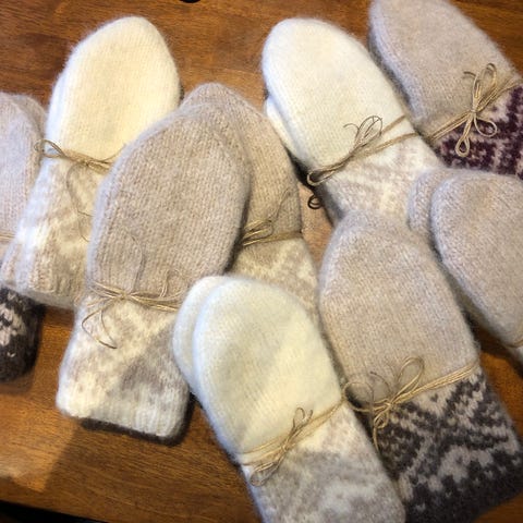 Varme og gode tovet ullvotter til hele familien. Strikket og tovet med Fritidsgarn fra Sandnes, 100% ullgarn.