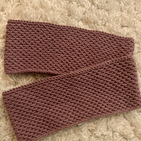 Jeg hekler pannebånd, i god, varm og kløfri ull