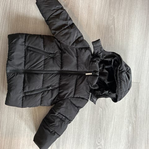 Selger en beige boblejakke fra KappAhl i størrelse 86. Jakkken er kun brukt noen få ganger og fremstår som svært pent brukt. Den er god og varm, med refleks på glidelåsen og bak for bedre synlighet. Hetten er festet med trykknapper og kan derfor tas av.