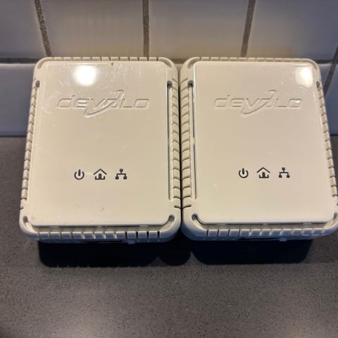 Devolo Powerline Adapter er en nettverksadapter i hvit farge. Den bruker strømnettet til å overføre nettverkssignal og har en standard stikkontakt integrert. Adapteren har en Ethernet-port for kablet tilkobling og er egnet for å utvide nettverk i hjem eller kontor ved hjelp av eksisterende elektriske ledninger. 2 stk.