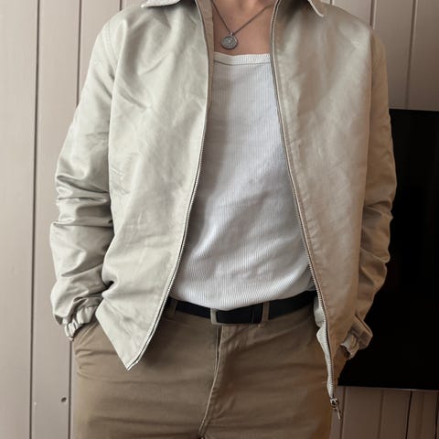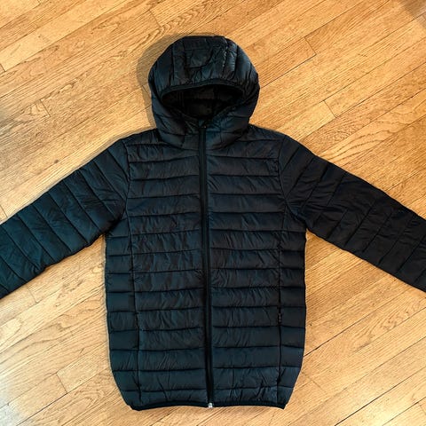 Lightweight jakke for herre i størrelse S, farge grønn. Jakken har fått en liten rift, 2mm, i venstre underarm som er reparert med lapp.
