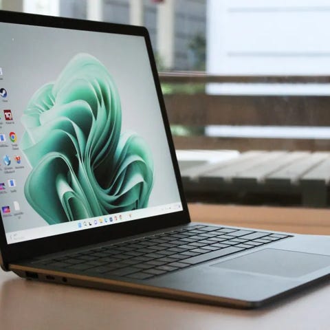 Microsoft Surface Go 3 laptop med 10,5 tommer PixelSense touchskjerm, sølvfarge og kompakt design. Utstyrt med 12. generasjons Intel®-prosessor, egnet for arbeid og underholdning. Bærbar og lett, tilpasset bruk på farten.
